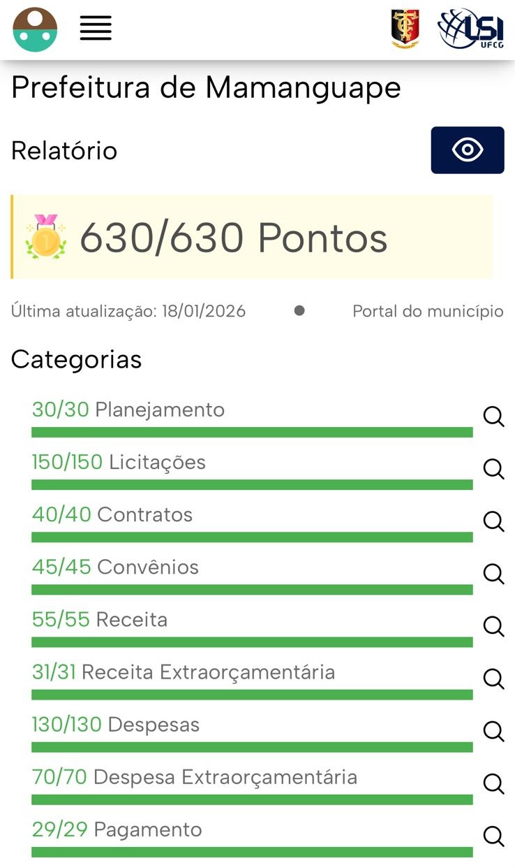 Transparência: Mamanguape atinge 100% em avaliação e conquista selo ouro em ranking do Tribunal de Contas